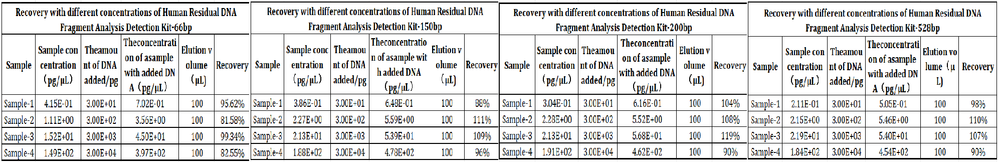 - The recovery rate of different concentration samples in the linear range is between 70% and 130%.