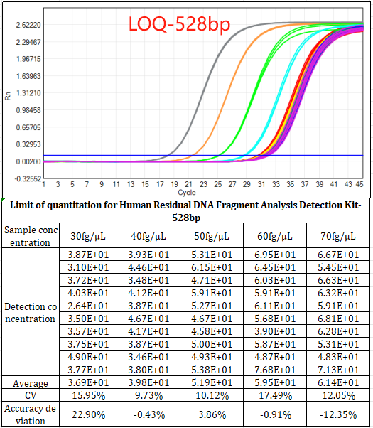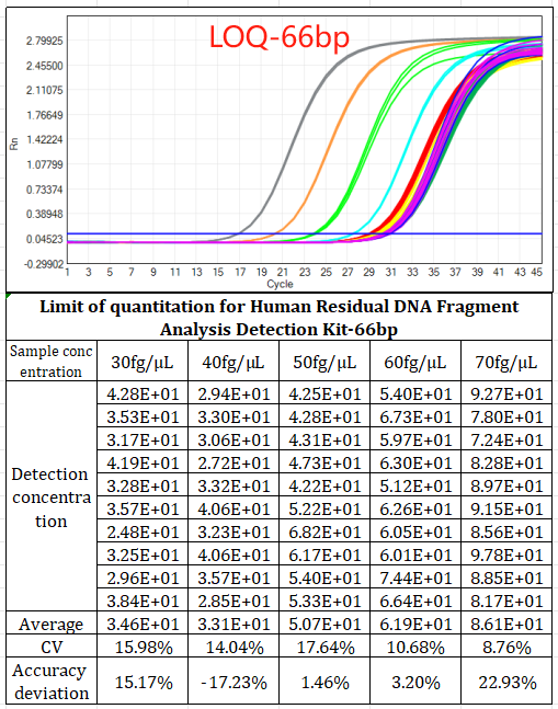 Fig 2. The limit of quantification (LOQ) for each of the four fragments was determined to be 30 fg/μL.